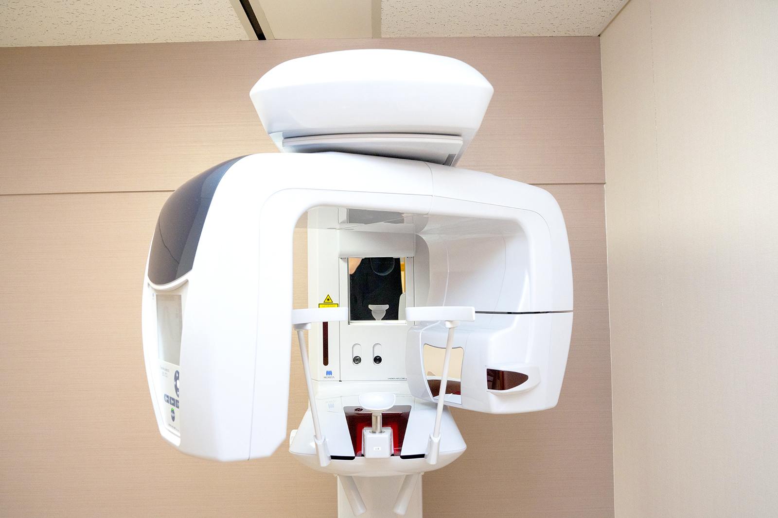 従来の平面的なレントゲンでは確認できなかったあごの立体構造や神経の位置、炎症のある部位などを、三次元で詳細に映し出せる装置です。