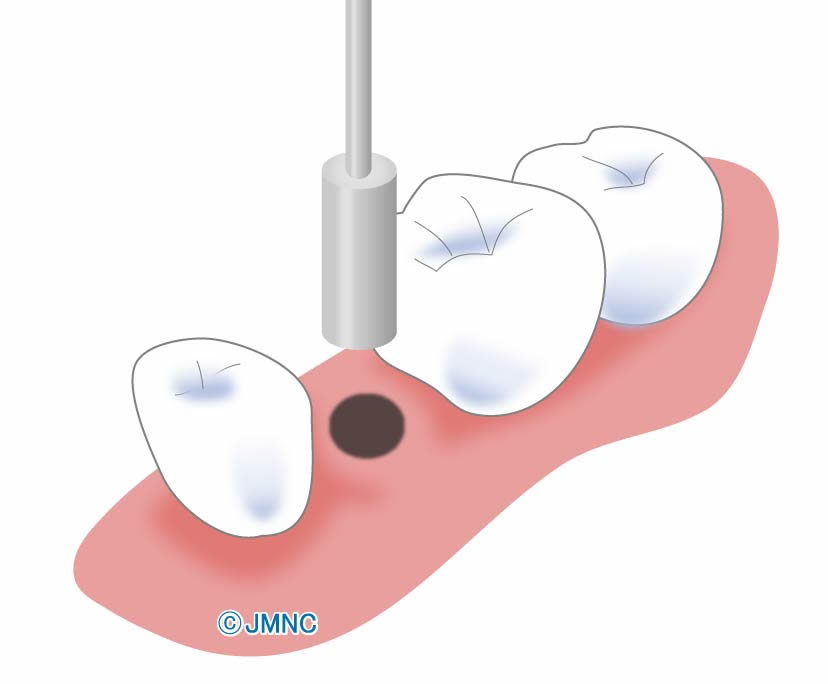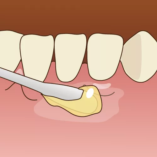 予め注射を打つ箇所の歯ぐきの表面に麻酔を塗ります。これによって、針が刺さる痛みを軽くすることができます。